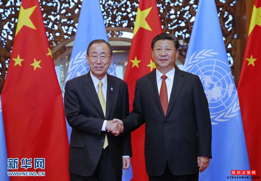 習(xí)近平歡迎潘基文出席9月二十國(guó)集團(tuán)領(lǐng)導(dǎo)人杭州峰會(huì)。習(xí)近平指出,中方高度重視并同聯(lián)合國(guó)在發(fā)展和氣候變化等問(wèn)題上開(kāi)展了密切合作,取得了重要進(jìn)展。中方推動(dòng)二十國(guó)集團(tuán)領(lǐng)導(dǎo)人峰會(huì)聚焦發(fā)展問(wèn)題,推動(dòng)共建“一帶一路”,就是要助力2030年可持續(xù)發(fā)展議程。中方倡導(dǎo)設(shè)立亞投行,并愿同聯(lián)合國(guó)、世界銀行等國(guó)際組織加強(qiáng)合作,就是要同世界各國(guó)分享中國(guó)的發(fā)展機(jī)遇。