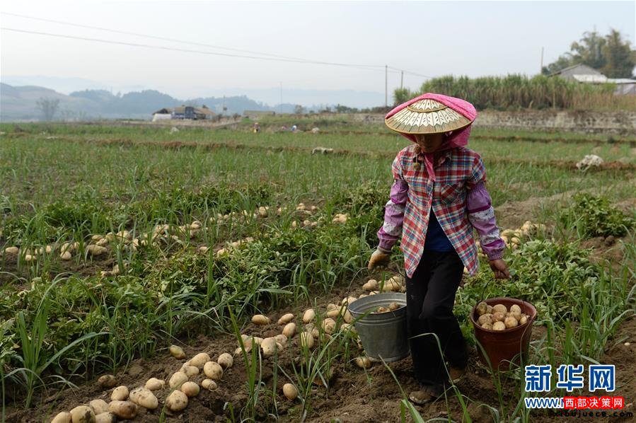 云南省德宏傣族景頗族自治州芒市軒崗鄉(xiāng)農(nóng)民提著采挖好的馬鈴薯準(zhǔn)備前去裝箱。當(dāng)?shù)伛R鈴薯每畝產(chǎn)值近6000元,是村民增收的主要途徑之一(2014年3月21日攝)。近年來,云南省大力推進(jìn)扶貧攻堅(jiān),走出了一條整村、整鄉(xiāng)、整縣、整州推進(jìn)的扶貧開發(fā)新路子。黨的十八大以來,以習(xí)近平同志為總書記的黨中央高瞻遠(yuǎn)矚、深謀遠(yuǎn)慮,以高度的政治感、使命感和責(zé)任感,把扶貧開發(fā)工作提升至治國理政新高度,廣泛凝聚社會各界力量,推進(jìn)實(shí)施精準(zhǔn)扶貧方略,為到2020年全面建成小康社會奠定堅(jiān)實(shí)基礎(chǔ)。按照中央部署,通過產(chǎn)業(yè)扶持、轉(zhuǎn)移就業(yè)、易地搬遷、政策兜底等方式,到2020年將實(shí)現(xiàn)7017萬農(nóng)村貧困人口脫貧目標(biāo)。新華社記者 胡超 攝