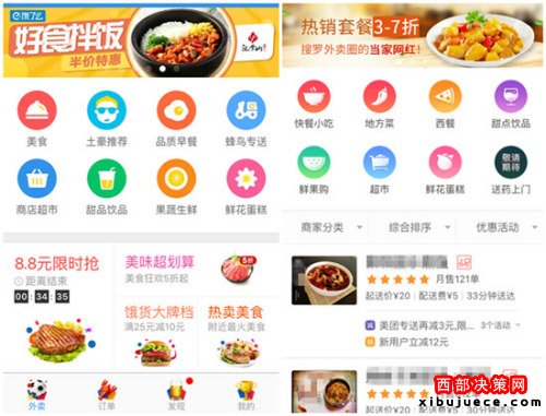 餓了么(左)與美團(tuán)訂餐APP界面。