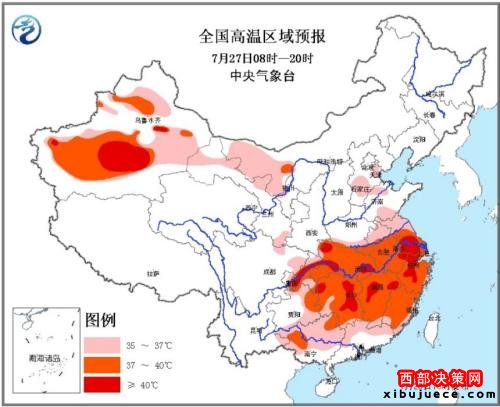 26日18時,中央氣象臺繼續(xù)發(fā)布高溫橙色預警。預計27日白天,華南北部、江南、江淮、江漢、黃淮南部、華北南部、四川盆地東部、重慶、貴州北部和東部以及新疆、甘肅西北部、內蒙古西部等地有35~39℃的高溫天氣。