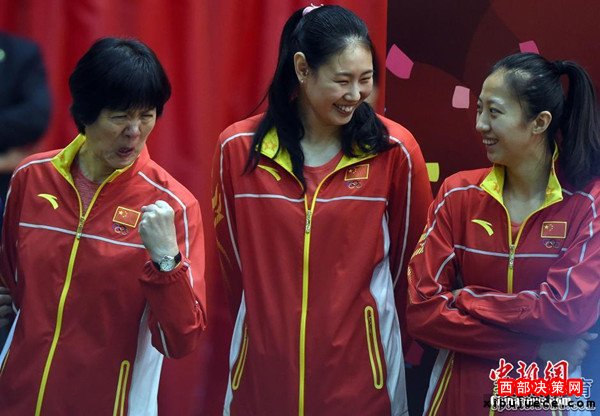 北京時(shí)間8月28日,女排隊(duì)員在香港與市民見面。見面會(huì)上女排姑娘與當(dāng)?shù)貎和M(jìn)行了互動(dòng)游戲,女排主教練郎平幽默扮鬼臉令人捧腹大笑。