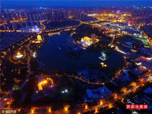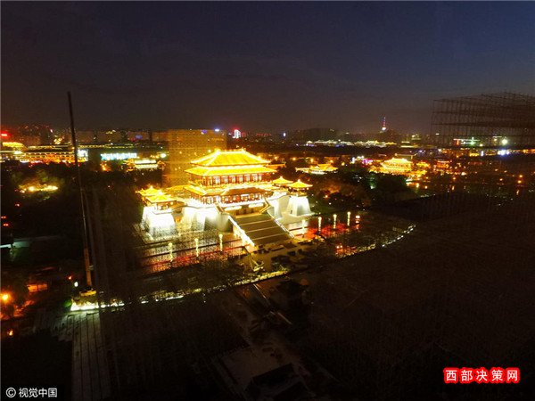 2016年08月30日,陜西省西安市,中央電視臺(tái)中秋晚會(huì)西安大唐芙蓉園分會(huì)場正在緊張布置中。記者從利用無人機(jī),分別航拍到大唐芙蓉園白天與夜晚的壯美風(fēng)景,如同一幅美麗畫卷,等待著中秋佳節(jié)的到來。