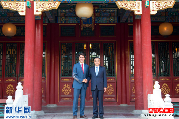 國(guó)務(wù)院總理李克強(qiáng)30日下午在北京會(huì)見(jiàn)來(lái)華進(jìn)行正式訪問(wèn)的加拿大總理特魯多。