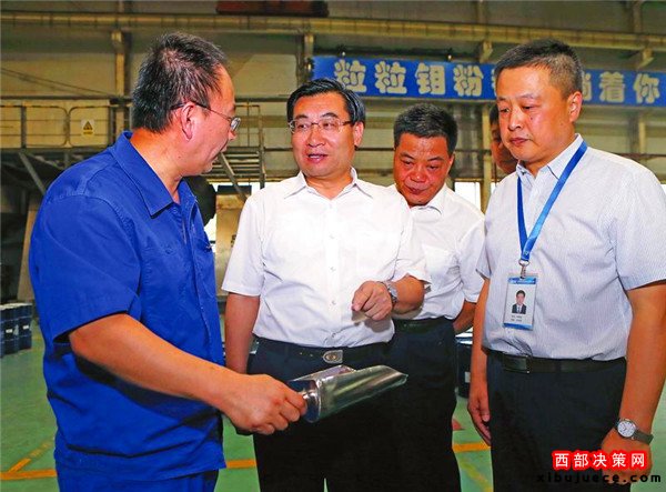 陜西有色集團鉬生產(chǎn)加工能力位居世界前三、亞洲第一,集團鉬金屬工業(yè)園引進了鉬加工行業(yè)世界先進的生產(chǎn)設備,是我國重要的鉬產(chǎn)學研基地。胡和平走進鉬制品分廠和鉬板材分廠,詳細了解鉬粉生產(chǎn)線、鉬板材及連軋生產(chǎn)線技術(shù)裝備和生產(chǎn)銷售情況,鼓勵企業(yè)抓住國家調(diào)整產(chǎn)業(yè)結(jié)構(gòu)的機遇,大力發(fā)展鉬產(chǎn)品精深加工,進一步延伸產(chǎn)業(yè)鏈、提高附加值,努力做全球最具實力的鉬產(chǎn)品供應商。