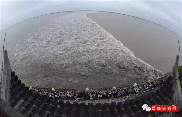 2014年9月11日,八月十八潮,壯觀天下無”,錢塘江沿岸數(shù)十萬當(dāng)?shù)厝罕姾屯獾赜慰蜖幎闷鋲延^景象。