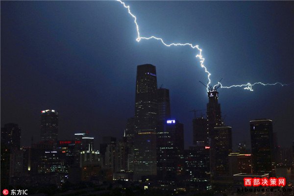 雷雨突如其來光顧北京城區(qū) 閃電劃破天際