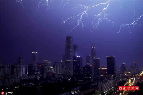 昨日傍晚雷雨光顧北京城區(qū) 閃電劃破天際