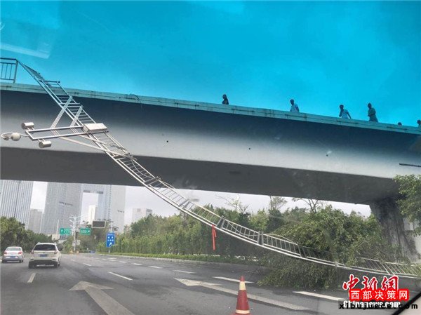 廈門一座人行天橋橋欄被吹下。