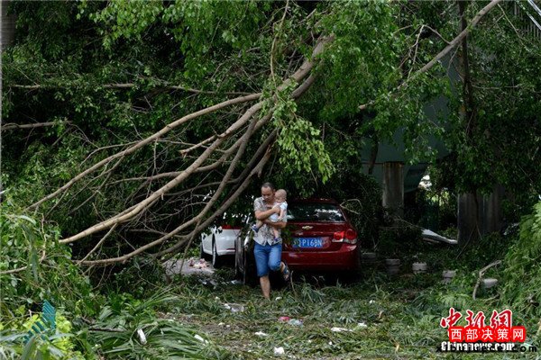 9月15日,今年第14號(hào)臺(tái)風(fēng)“莫蘭蒂”于凌晨3時(shí)05分在廈門翔安沿海登陸,登陸時(shí)中心附近最大風(fēng)力15級(jí)(48米/秒,強(qiáng)臺(tái)風(fēng)級(jí)),中心氣壓945百帕。圖為廈門市區(qū)路上大批車輛被吹倒的樹(shù)木損壞。