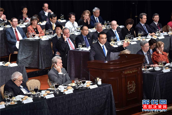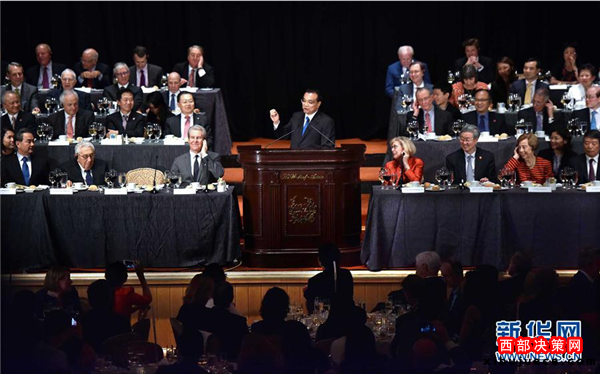 李克強(qiáng)出席紐約經(jīng)濟(jì)俱樂部舉行的歡迎宴會并致辭和回答提問
