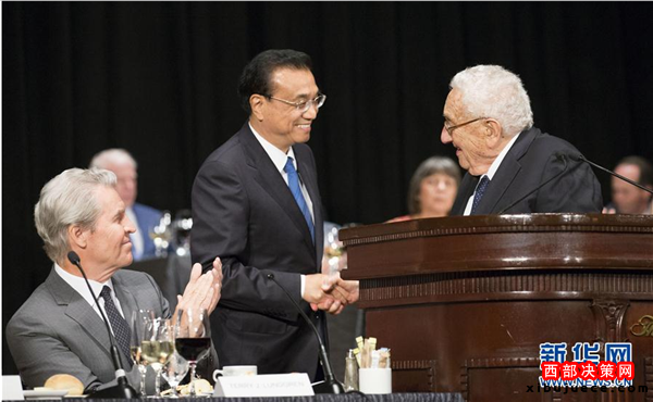 李克強(qiáng)表示,基辛格博士45年前訪華時,中美貿(mào)易幾乎為零。45年后的今天,中美貿(mào)易額占全世界貿(mào)易總量的五分之一,中美經(jīng)濟(jì)總量之和占世界經(jīng)濟(jì)總量的三分之一。我們的貿(mào)易和投資量如此之大,自然難免有分歧摩擦,但我們之間的共同利益遠(yuǎn)大于誤解和分歧。我們正在進(jìn)行的雙邊投資協(xié)定談判就是向兩國工商界發(fā)出中美進(jìn)一步擴(kuò)大相互開放和投資的積極信號。希望美方采取務(wù)實靈活態(tài)度,與中方共同努力達(dá)成高水平、互利共贏的雙邊投資協(xié)定。兩國可以通過更多貿(mào)易與人員往來,坦誠溝通,增進(jìn)理解與互信,推動中美關(guān)系朝著穩(wěn)定向好的方向繼續(xù)前行。