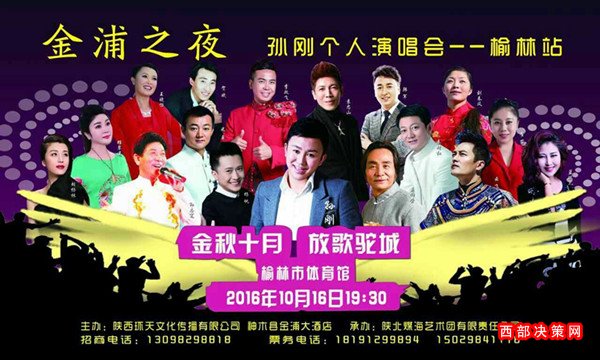 西部決策網(wǎng)榆林訊 (李建治 賀成友 石海瑞 呂正) 現(xiàn)場(chǎng)報(bào)道 塞上秋高氣爽,塞上秋色迷人。9月25上午9點(diǎn),由陜西環(huán)天文化傳播有限公司、神木縣金浦大酒店主辦,陜北煤海藝術(shù)團(tuán)責(zé)任有限公司承辦的“金浦之夜孫剛個(gè)人演唱會(huì)——榆林站”在榆林煤海大舞臺(tái)召開(kāi)了新聞發(fā)布會(huì),榆陽(yáng)區(qū)文體事業(yè)局局長(zhǎng)和60余家新聞媒體參加了新聞發(fā)布會(huì)。