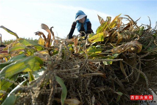 9月28日,在定西市隴西縣德興鄉(xiāng)營(yíng)門(mén)村,一位農(nóng)民在清理自家地里已經(jīng)旱死的玉米。