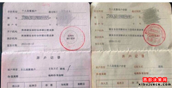 查詢得知:以上村名均在2009年11月3日,由村上統(tǒng)一在黃家灣信用社代辦‘一卡通’賬戶(為了方便惠農(nóng)資金及時發(fā)放);但黃家灣信用社職工席某查詢明細(xì)是從2010年5月份起至2012年底,之后(一卡通)賬戶沒進(jìn)過任何惠農(nóng)資金;2014年12份張承根的‘一卡通’賬戶神奇般復(fù)活,再次打進(jìn)惠農(nóng)資金。
