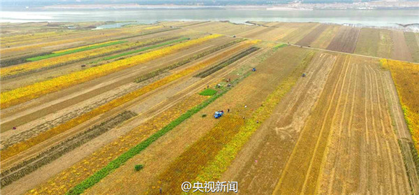 山西黃河灘涂地豐收 “七彩畫(huà)廊”綿延百里