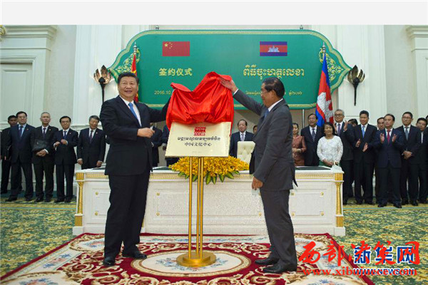 會談后,兩國領導人共同見證了外交、共建“一帶一路”、產(chǎn)能合作、投資、水利、新聞、海洋等領域多項雙邊合作文件的簽署,并共同出席金邊中國文化中心揭牌儀式。