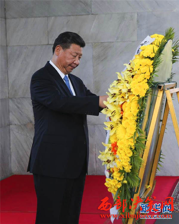 會談前,習近平向柬埔寨獨立紀念碑獻花圈。