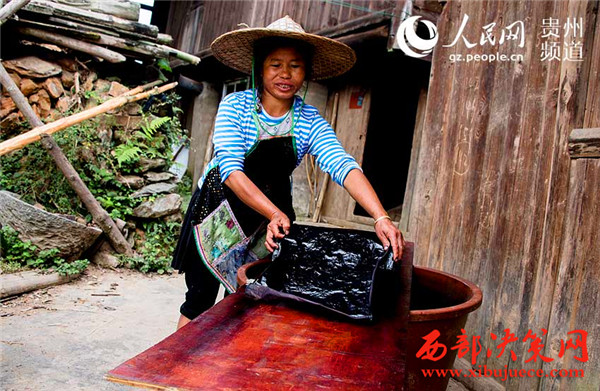 獨特文化:苗族婦女制“亮布”涂上蛋清做新衣