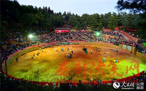 斗牛是石林縣最具民族特色的項目之一,已和當(dāng)?shù)匾妥迦嗣裣喟榱藬?shù)千年,石林很多村莊都會舉辦斗牛比賽。對彝族人民來說,斗牛可以帶來紅火、吉祥,具有有很深的價值寓意。