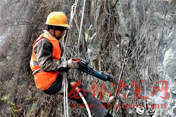 在重大地質(zhì)災(zāi)害隱患點治理現(xiàn)場,記者發(fā)現(xiàn)了一群“大山里的蜘蛛人”。他們在50米高的懸崖上作業(yè),用鐵絲網(wǎng)將大山“網(wǎng)住”,防止懸崖上的石塊掉落,保證國道上來往車輛的行車安全。記者注意到,整個作業(yè)期間,他們都用一根安全繩系住身體,吊在懸崖邊。初冬的北京寒風已經(jīng)有些刺骨,在山區(qū)更是比市區(qū)低了幾度,而這些“蜘蛛人”也沒有進行特別的保暖工作。
