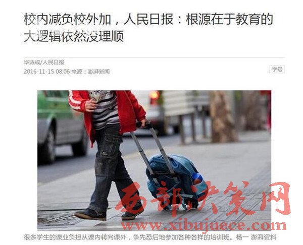 是學校錯了嗎?學校響應(yīng)行政命令,給學生減負。這幾年學生的課業(yè)負擔從校內(nèi)轉(zhuǎn)到校外,從側(cè)面說明減負也有了一定成效。