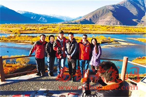 進入11月份以來,隨著降雨量的減少,尼洋河水開始變得清澈見底,河畔大片大片的柳樹逐漸泛黃,在藍(lán)天白云的映襯下,形成了一道道秀麗的美景,十分迷人,吸引了大批游客和攝影愛好者前來游覽、攝影。圖為游客在風(fēng)景秀麗的尼洋河和雅魯藏布江交匯處合影留念。