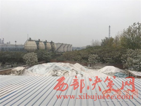 記者觀察附近建筑物,發(fā)現(xiàn)還有部分房頂上鋪滿白色粉塵,而樹上的樹葉也都是白的。知情人說(shuō),煤場(chǎng)旁邊的巷子里還有個(gè)灰場(chǎng)。