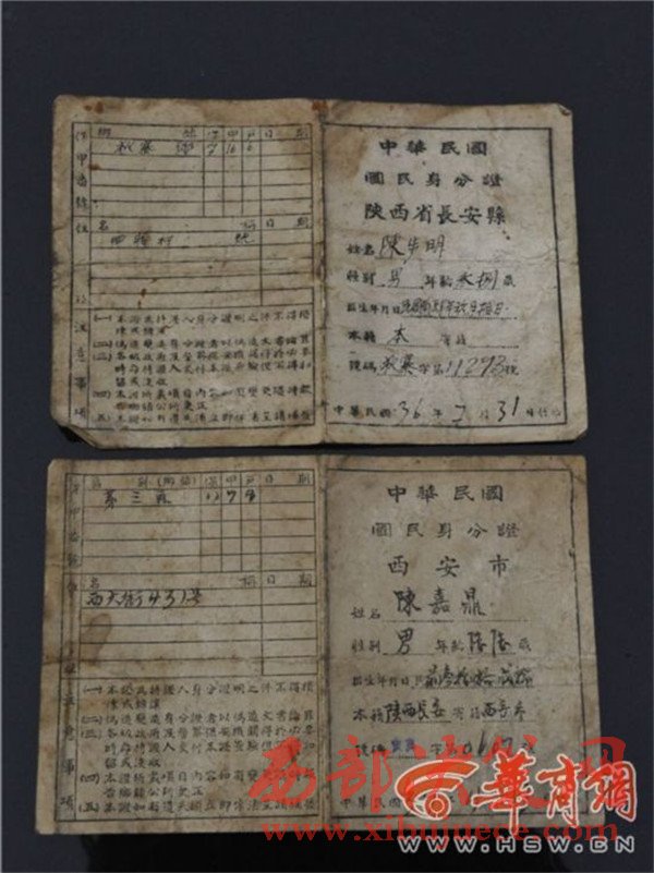 陳先生是西安市灞橋區(qū)席王街辦西蔣村村民,今年4月,他翻建老房子時,發(fā)現(xiàn)一個木盒,里邊裝著他祖父、曾祖父民國時期的身份證以及其他一些東西。