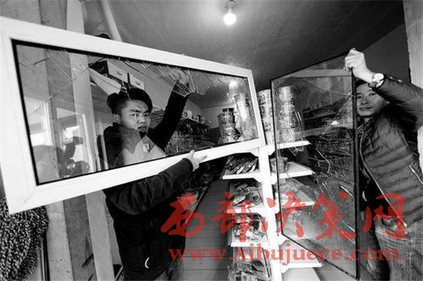 令趙女士沒想到的是,27日下午5點多,這群人又出現(xiàn)了。當時趙女士的兒子田江正在里屋吃飯,外面的防盜門虛掩著,突然七八個男子帶著洋鎬把就沖了進來,沖著貨架一通亂砸。田江說:“我聽見響動掀開門簾出來,都是蒙面的小伙,我聽清楚了對方的一句話‘還敢開還砸!’,我當時看著對方人多,沒敢追。”目前,趙女士一家已經(jīng)報警,韋曲派出所正對此事做進一步調(diào)查。