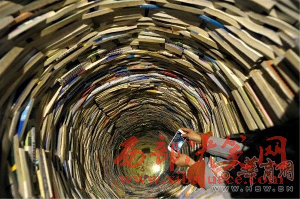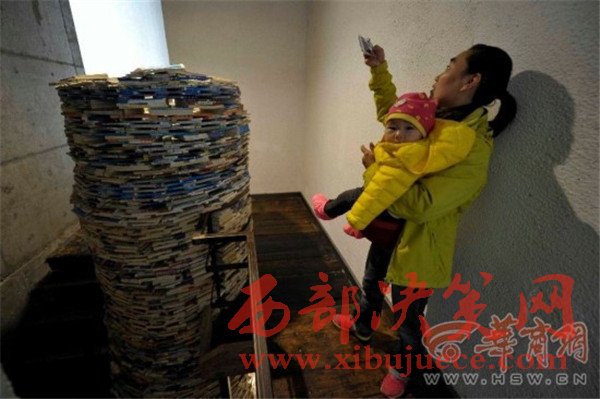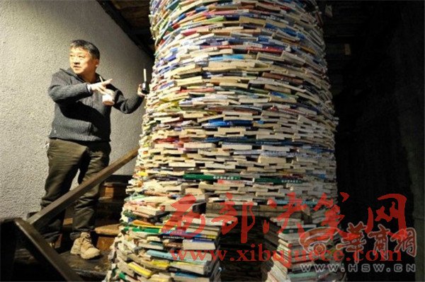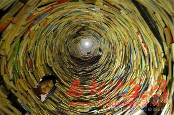 原標題:震撼!西安陪讀媽媽用4噸教輔書壘出7.5米高"書井"