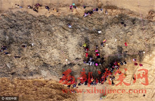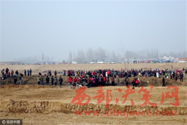 當天中午12點,中牟縣警方、文物所抵達現場,拉起了警戒線,對“挖寶”村民進行了疏散。