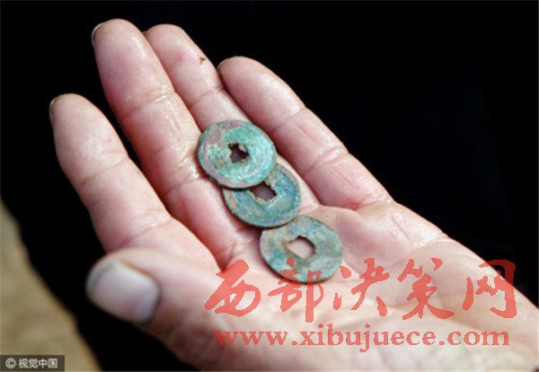 “我找到了一大串。”一村民歡呼。水里淘了淘,瞬間黑色的淤泥變成了十幾個銅錢。