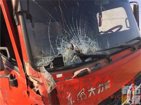 貨車司機(jī)王某:“我當(dāng)時(shí)正常行駛,然后就看見(jiàn)它(拉沙車)從那邊先撞了一輛小轎車,然后撞過(guò)來(lái),把我嚇的。”