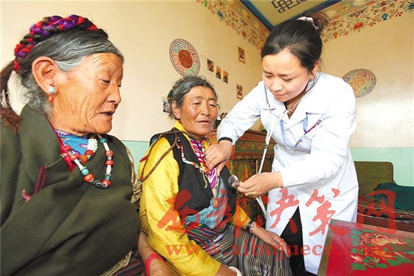 五保集中供養(yǎng)工程,是我區(qū)出臺的一項重大民心工程和德政工程。如今我區(qū)的孤寡老人們在黨和政府的關(guān)懷下,生活起居得到了有效保障,實現(xiàn)了老有所養(yǎng)、老有所樂、病有所醫(yī)。圖為日喀則市桑珠孜區(qū)敬老院的醫(yī)護人員在為老人們檢查身體。