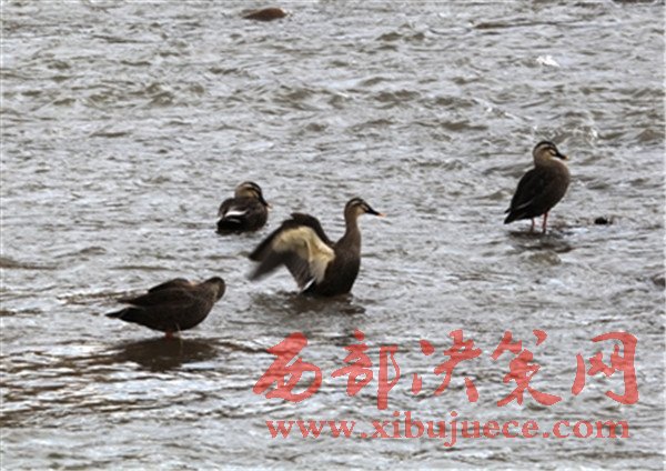 湟水河畔嬉戲的野鴨為冷清的冬天增添一道亮麗風(fēng)景