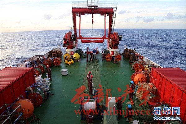 科考隊員在回收觀測設(shè)備(12月3日攝)。我國遠(yuǎn)洋綜合考察船“科學(xué)”號正在西太平洋執(zhí)行潛標(biāo)觀測網(wǎng)維護(hù)與升級任務(wù)。截至目前,科考隊員已獲取了140余件觀測設(shè)備連續(xù)1年的現(xiàn)場數(shù)據(jù),維護(hù)了8套深海潛標(biāo),并重新布放至西太平洋海域。