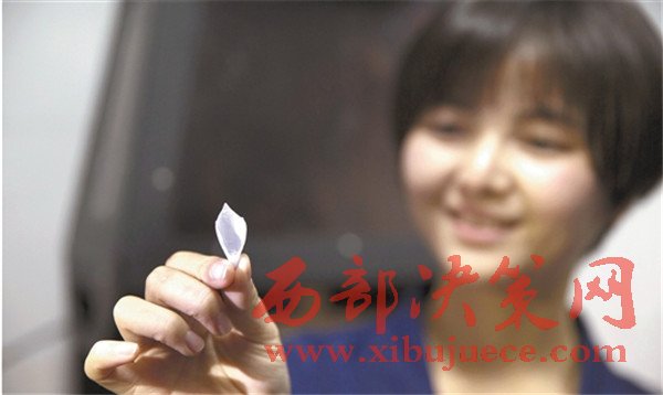 經(jīng)過這不均勻的“日光浴”后,黃麗媚把玻璃中間的材料拿出來,之前的液體已經(jīng)變成一張扁平的薄膜。