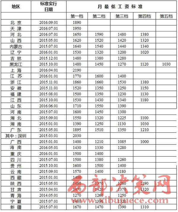 12月13日,人社部勞動(dòng)關(guān)系司公布《全國各地區(qū)月最低工資標(biāo)準(zhǔn)情況》。