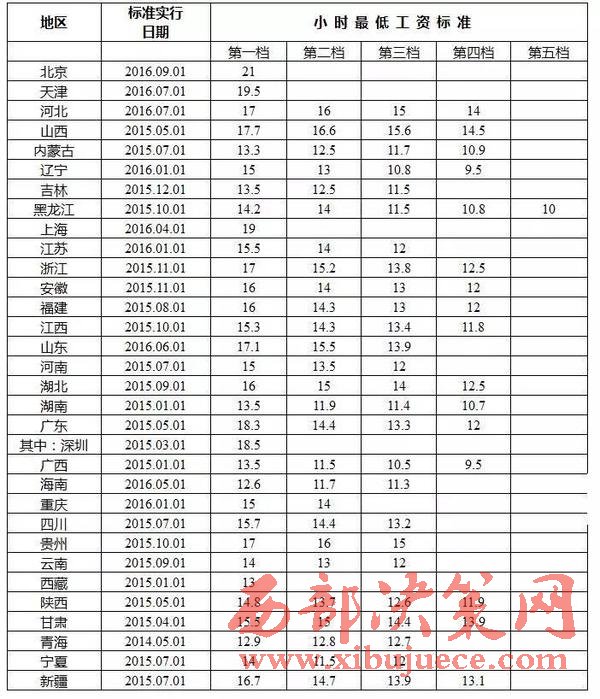 同一天,人社部勞動(dòng)關(guān)系司公布的《全國各地區(qū)小時(shí)最低工資標(biāo)準(zhǔn)情況》則顯示,小時(shí)最低工資標(biāo)準(zhǔn)中,北京最高,為21元,其次是天津,為19.5元。