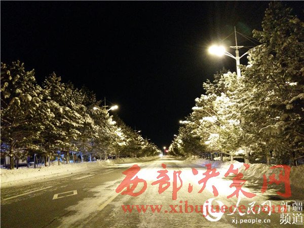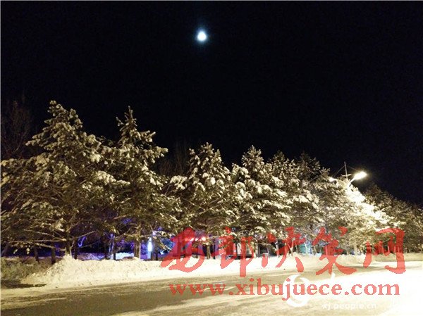 有“山水畫卷 生態(tài)邊城”美譽的新疆哈巴河縣環(huán)境良好、風光優(yōu)美,就連風雪彌漫之夜也如畫卷一般美麗迷人。