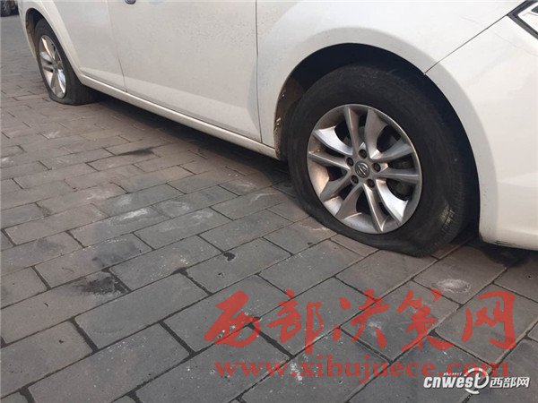 張先生的車就停在錦業(yè)一路上的這個(gè)西安市錦業(yè)新居小區(qū)門口,今個(gè)出門開車才發(fā)現(xiàn),自己的愛車輪胎被扎破了,而且周圍很多車也遭了秧。