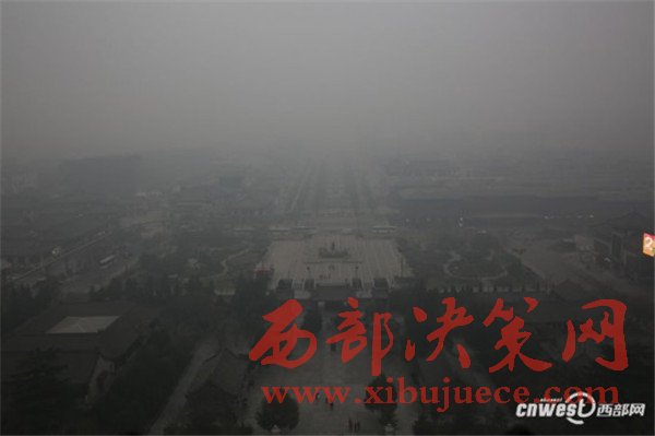 12月20日,西安市空氣質(zhì)量指數(shù)接近500,空氣質(zhì)量嚴(yán)重污染,昨日西安市首次啟動(dòng)重污染天氣Ⅰ級(jí)應(yīng)急響應(yīng),今日繼續(xù)執(zhí)行重污染天氣Ⅰ級(jí)應(yīng)急響應(yīng),幼兒園、中小學(xué)停課,機(jī)動(dòng)車限行50%。重度霧霾的大雁塔失去了千年古色,稍遠(yuǎn)一點(diǎn)看大雁塔若隱若現(xiàn),再走遠(yuǎn)一點(diǎn)大雁塔在視線中消失。登上大雁塔頂層,從東南西北四個(gè)窗口拍下的照片幾乎一模一樣。