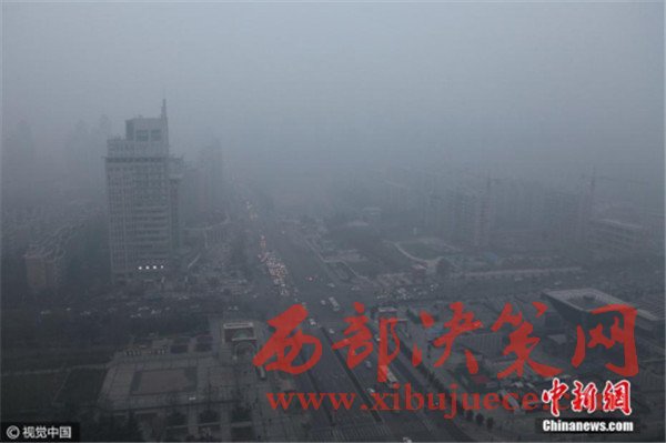 2016年12月19日,鳥(niǎo)瞰西安城市,霧霾籠罩,不太遠(yuǎn)的建筑也幾乎被霧霾“吞噬”,看不到一點(diǎn)影,當(dāng)日早八點(diǎn),空氣質(zhì)量指數(shù)達(dá)409,為嚴(yán)重污染。 圖片來(lái)源:視覺(jué)中國(guó)