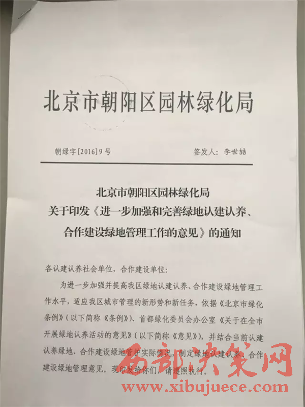 朝陽區(qū)園林綠化局負責人承諾將對綠地認養(yǎng)建立完善機制