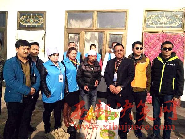 1月13日,寧夏海興義工聯(lián)合會(huì)銀川辦事處的工作人員來(lái)到銀川市賀蘭縣南梁臺(tái)子鐵東村、鐵西村,慰問(wèn)當(dāng)?shù)?戶孤寡貧困家庭,捐贈(zèng)米面油和棉衣等生活物品,  “大娘,還有半個(gè)月就過(guò)年了,這是咱們企業(yè)的一點(diǎn)心意,祝您老身體健康,吉祥如意”。這次慰問(wèn)空巢老人和貧困家庭的單位有:銀川培訓(xùn)學(xué)院、銀川美年大健康體檢醫(yī)院、海原馬軍飯莊、搏港旅游公司、寧夏雙玉農(nóng)業(yè)科技有限公司、寧夏塞杞源苗木專(zhuān)業(yè)合作社。今年年初,他們根據(jù)南梁臺(tái)子鄉(xiāng)提供的貧困戶名單,結(jié)合入戶走訪,最終確定了馬寶林、馬萍霞等8戶殘疾、孤寡貧困家庭。由寧夏蕊杰伯港旅游有限公司、 銀川美年大健康體檢醫(yī)院等7家協(xié)會(huì)成員企業(yè)共同出資購(gòu)買(mǎi)生活物品,逐戶慰問(wèn),反哺社會(huì)。