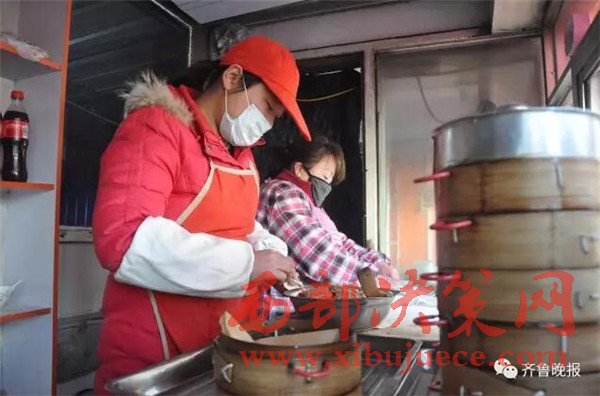 14日一大早,記者在無棣縣城找到了正忙著包小籠包的“用盡一生”。她本名趙平,無棣縣信陽鎮(zhèn)人,30歲,慈眉善目,笑起來有一種特別的吸引力。趙平的包子鋪其實(shí)就是一座簡(jiǎn)易板房,而負(fù)責(zé)打掃這條街的70歲環(huán)衛(wèi)工程延新,休息之余喜歡來這里坐坐,喝點(diǎn)熱水,洗洗手,聊聊天。“主要感覺他掙這些錢實(shí)在不容易”,趙平說。
