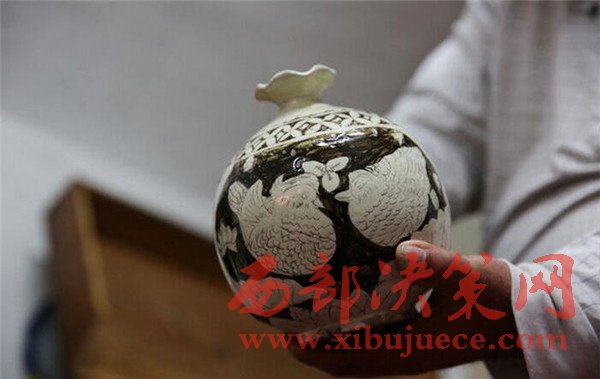 2016年9月23日,陜西榆林,“這件是遼代的石榴樽,你看上面的鴛鴦多漂亮。”劉福學(xué)打開他的木箱,向來客展示他的藏品。