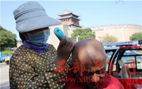 2016年9月21日,陜西榆林,劉福學(xué)把所有積蓄都用來收藏,生活節(jié)儉,頭發(fā)長(zhǎng)了就在街頭的5元理發(fā)攤解決。
