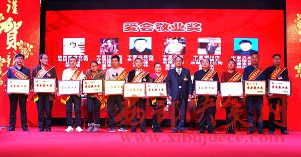 年會(huì)上,張海龍會(huì)長(zhǎng)、李明義執(zhí)行會(huì)長(zhǎng)一起向2016年新增常務(wù)副會(huì)長(zhǎng)、副會(huì)長(zhǎng)、理事授牌;商會(huì)黨支部書記、秘書長(zhǎng)王惠選宣讀了寧夏陜西商會(huì)關(guān)于表彰獎(jiǎng)勵(lì)2016年度特殊奉獻(xiàn)獎(jiǎng)、誠(chéng)信企業(yè)獎(jiǎng)、創(chuàng)新企業(yè)獎(jiǎng)、愛會(huì)敬業(yè)獎(jiǎng)企業(yè)單位的決定。自治區(qū)人民檢察院原檢察長(zhǎng)師夢(mèng)雄向榮獲商會(huì)特別奉獻(xiàn)獎(jiǎng)的張海龍會(huì)長(zhǎng)、李明義執(zhí)行會(huì)長(zhǎng)頒獎(jiǎng);張海龍會(huì)長(zhǎng)、李明義執(zhí)行會(huì)長(zhǎng)、黨支部書記、秘書長(zhǎng)王惠選分別向11個(gè)榮獲誠(chéng)信企業(yè)、11個(gè)榮獲創(chuàng)新企業(yè)、11個(gè)榮獲愛會(huì)敬業(yè)企業(yè)單位頒獎(jiǎng)。