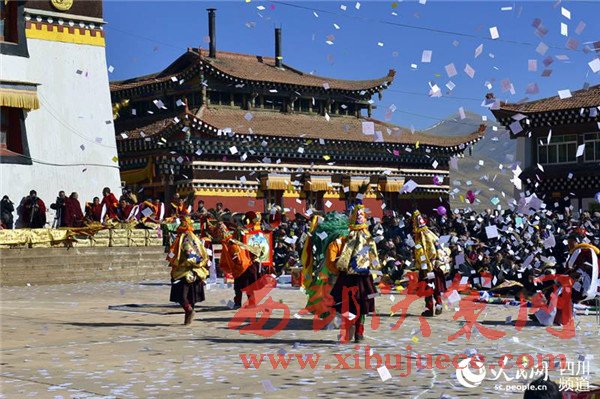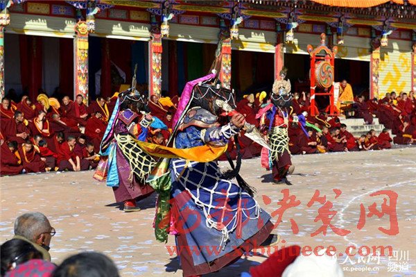 12日,四川阿壩縣的郎依寺格外熱鬧,一大早不少身穿傳統(tǒng)服飾的藏族群眾前來參加“莫郎節(jié)”活動。據悉,在跳神儀式上,頭戴面具、身穿法衣的舞者手持各式法器,在長法號、羊皮鼓等樂器的伴奏下跳起古老的舞步,為新年祈福。
